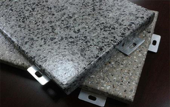 仿石紋氟碳鋁單板的主要特征是鋁單板表面逼真的石紋色,裝飾效果喜人,且質量輕、安裝方便,幾乎可以替代大理石這種幕墻材料。它主要通過熱轉印等工藝,把石紋色轉印到鋁板表面,然后再噴上氟碳罩光漆,經過多次噴涂和烘烤,終客戶定制的石紋效果。